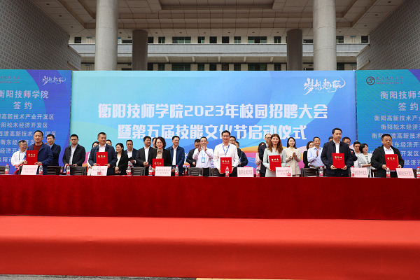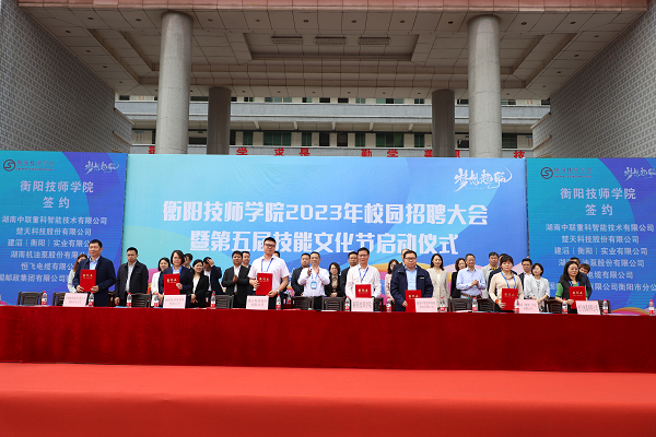 聚力中心化,奋进新征程。5月24日上午,衡阳技师学院2023年校园招聘大会暨第五届技能文化节启动仪式在文化广场举行。市人民政府副秘书长胡书伟宣布开幕,学院党委书记肖春林主持仪式,院长廖与飞致欢迎辞。此次招聘大会共吸引特变电工衡阳变压器有限公司、衡阳华菱钢管有限公司、南岳电控(衡阳)工业技术股份有限公司、建滔(衡阳)实业有限公司、湖南势弘机器人科技有限公司等省市98家企业来院选才,共提供岗位5000余个,现场达成就业意向的学生2000余人。