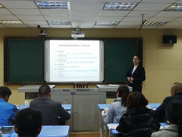 培训会上,刘大琼老师、蒋铁球老师分别同大家分享了“常见公文写作规范”和“公文写作应注意的几个问题”。两位老师结合自身多年文字工作经验,从公文写作的意义、写作技巧、文体运用、格式排版、注意事项等多个方面,深入浅出地讲解了如何进一步规范公文格式和提高公文写作水平;此次培训内容丰富、语言生动,既有专业性的理论知识,又有具体的典型实例分析。