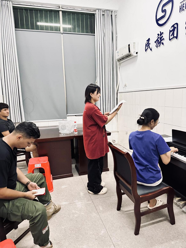 他们怀揣着对艺术的热爱和对学院的深厚情感,主动放弃了自己的休息时间,以无私的奉献精神和专业的艺术素养,为学生们树立了榜样。在排练过程中,不同民族的文化相互碰撞、融合。教师们耐心指导学员,学员们也虚心学习,共同探讨如何将节目打造得更加精彩。他们的付出与奉献,为中秋晚会增添了一抹绚丽的色彩,也为民族团结书写了新的篇章。