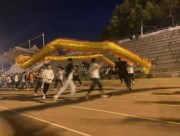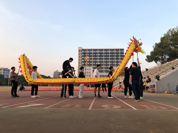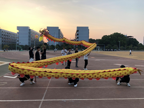 本网讯 近期,学院田径场传来阵阵锣鼓声,四条金灿灿的舞龙在教练陈祖昆的指导下,时而上下翻腾、时而左右翻飞,不断变化出各种花样,引得围观师生一阵拍手叫好。