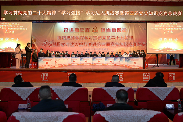 11月30日至12月1日,衡阳技师学院在大礼堂举行“奋进新征程、担当新使命”学习贯彻党的二十大精神“学习强国”学习达人挑战赛暨第四届党史知识竞赛师生组决赛。