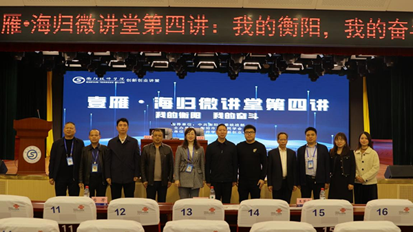11月24日,中共衡阳市委统战部、衡阳市欧美同学会、衡阳技师学院创新创业中心联合举办的“壹雁・海归微讲堂第四讲——我的衡阳,我的奋斗”在衡阳技师学院公共实训基地11楼学术报告厅成功举行,活动邀请归国留学生代表王子豪担任主讲嘉宾。