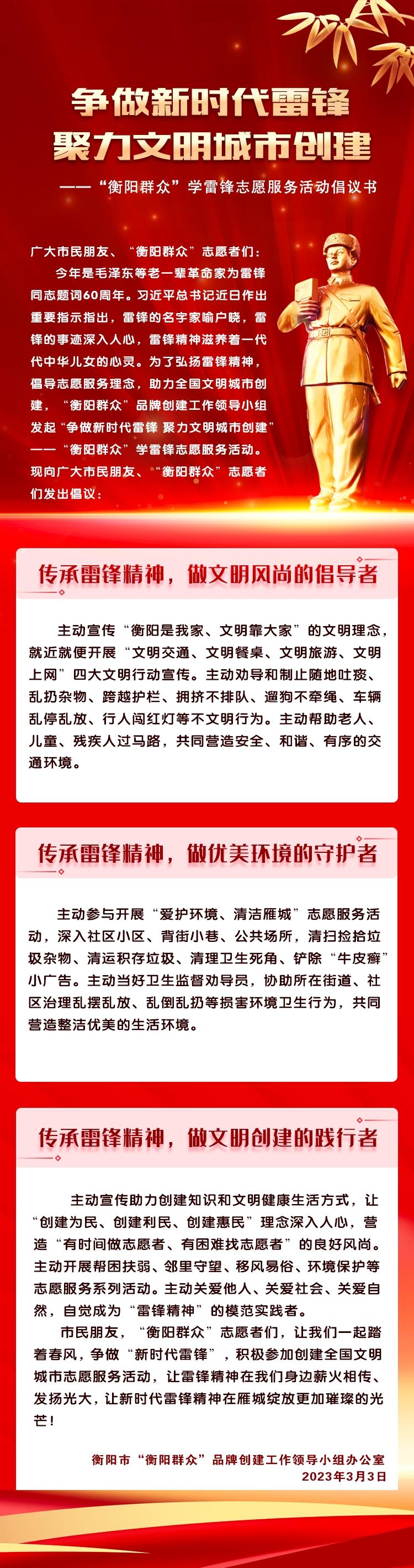 ——“衡阳群众”学雷锋志愿服务活动倡议书