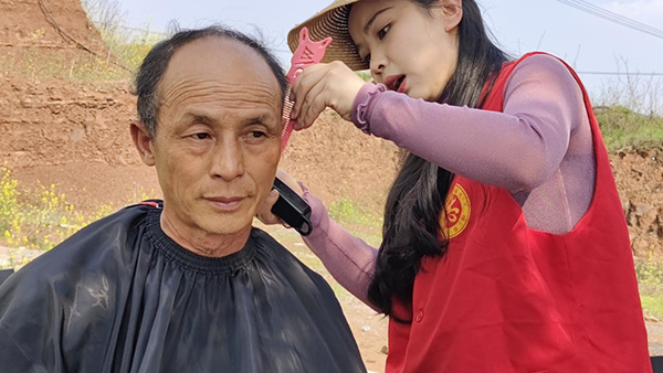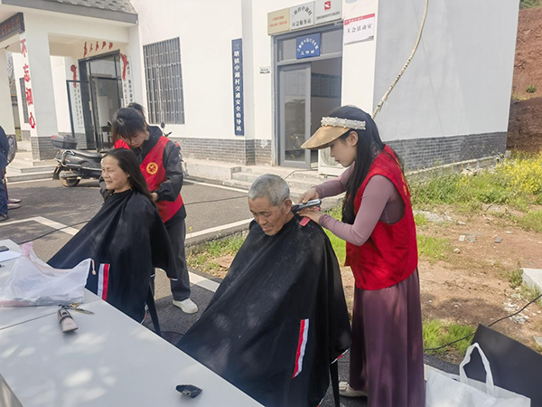 现场设有爱心义剪、电器维修、美化环境等多个服务点,前来的居民络绎不绝,志愿者们忙得不亦乐乎。义剪志愿者边理发边询问老人的意见,“两边修剪剪短,头顶修齐整......”在志愿者娴熟的手法下,一个个干净利落的发型便成型了。