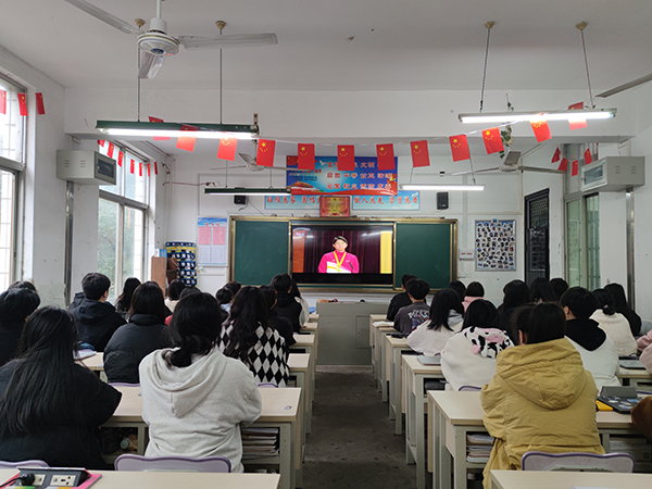 学生收看技能成才技能报国先进事迹视频报告会现场
