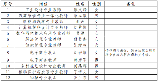根据《衡阳技师学院2023年度人才引进公告》的规定,经报名、资格审查、面试、体检、考察等程序,确定廖文婷等12名同志为拟聘用人员,现予以公示,具体名单见附件。