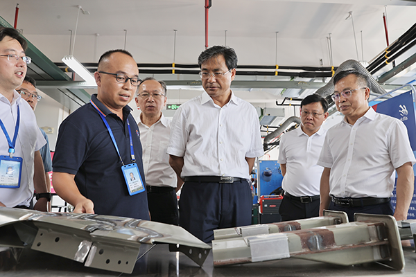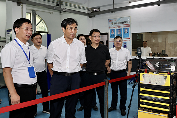 8月9日,湖南省人力资源和社会保障厅党组书记、厅长李永军到衡阳技师学院调研中华人民共和国第二届职业技能大赛(以下简称第二届全国技能大赛)备赛情况。省人社厅党组成员、副厅长廖跃贵,省人社厅职业能力建设处处长刘旸、省人社厅办公室副主任袁江参加调研。衡阳市委常委、市政府常务副市长于新凡,衡阳技师学院党委书记肖春林,市人社局党组成员、副局长刘文文等陪同调研。
