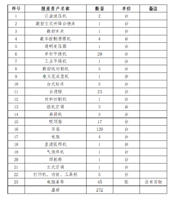 我院近期拟对资产一批(详情见下表)进行处置,请有意向者于11月24-28日与资产管理处联系,55体育的联系方式:李老师15580308887。