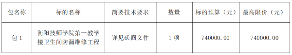 1、采购项目名称:衡阳技师学院第一教学楼卫生间防漏维修工程项目