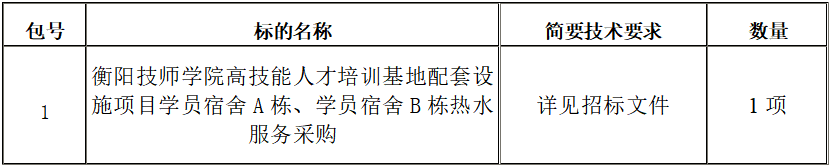采购项目名称:衡阳技师学院高技能人才培训基地配套设施项目学员宿舍a栋、学员宿舍b栋热水服务采购项目