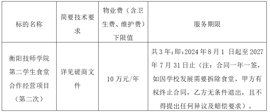 采购项目名称:衡阳技师学院第二学生食堂合作经营项目(第二次)