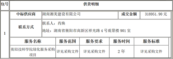 衡阳技师学院绿化服务采购项目中标(成交)公告-55体育