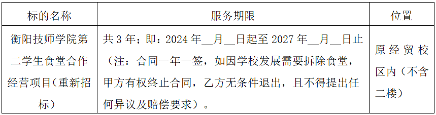 项目名称:衡阳技师学院第二学生食堂合作经营项目(重新招标)