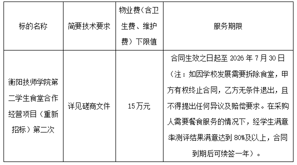 采购项目名称:衡阳技师学院第二学生食堂合作经营项目(重新招标)第二次