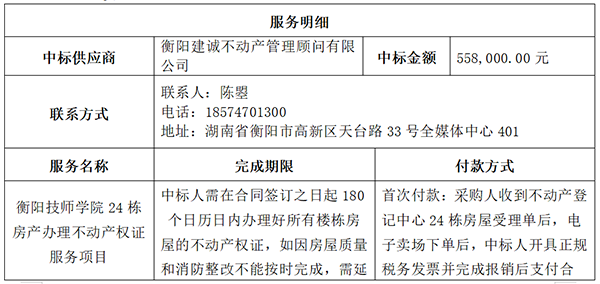 衡阳技师学院24栋房产办理不动产权证服务项目中标公告-55体育