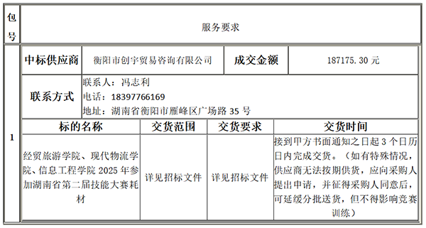 衡阳技师学院参加2025年湖南省第二届技能大赛耗材采购项目中标(成交)公告-55体育