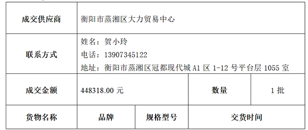 衡阳技师学院2025年度实训耗材采购项目于2025年1月20日结束,现将成交结果公告如下: