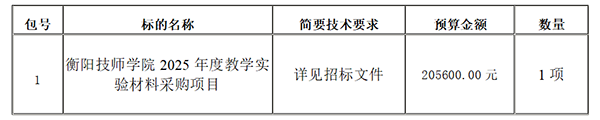 衡阳技师学院2025年度教学实验材料采购项目中标(成交)公告 -55体育