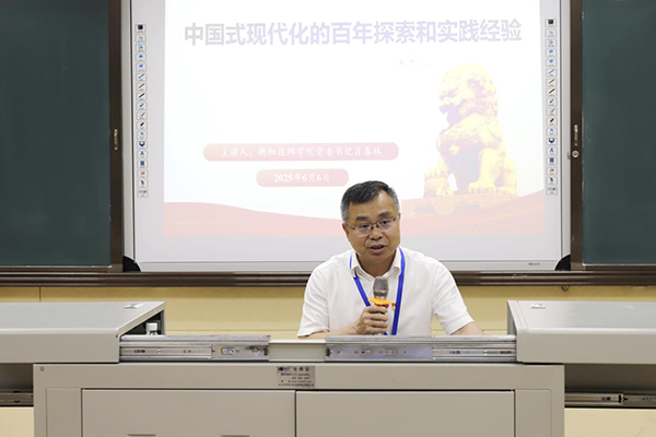 在专题党课环节,肖春林以“中国式现代化的百年探索和实践经验”为题,从发展历程、内涵特征、实践路径等方面阐述了中国式现代化的理论成果。他通过党史案例、国际热点和本地实践,生动展现了中国式现代化的独特优势和时代价值,引发学员共鸣。