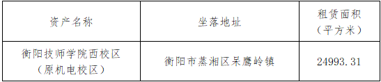 为盘活国有资产,受衡阳技师学院委托,湖南铭冠项目管理有限公司定于2025年8月25日对衡阳技师学院西校区闲置房产进行公开招租,现将有关事宜公告如下: