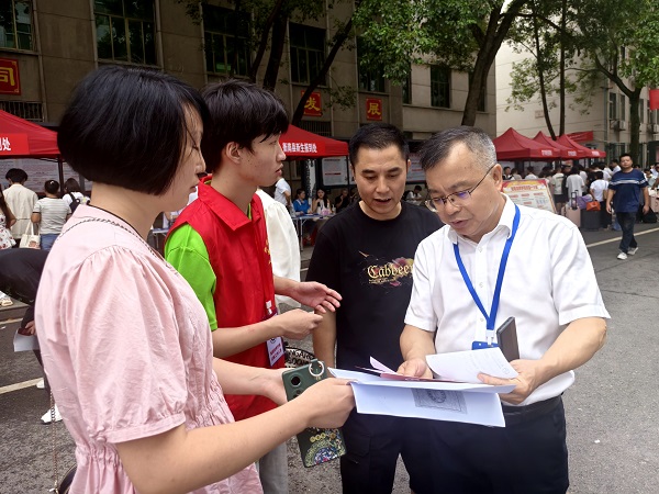 在校园内,迎新现场到处可见“红马甲”志愿者。他们中,既有党员教师,也有团员青年学生。志愿者们用最饱满的精神和最暖心的举动,协助新生完成入学报到、行李搬运、路线指引,积极为新生及家长答疑解惑。