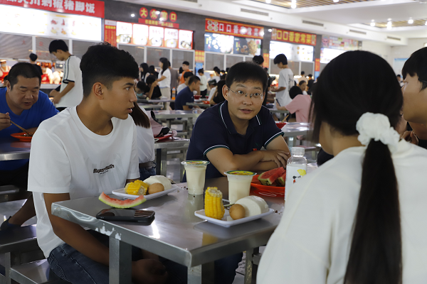 在陪餐过程中,学院领导与学生面对面沟通交流,了解学生对饭菜是否合口味、在校学习生活的适应情况,倾听学生的意见和建议,教育引导学生养成勤俭节约的良好习惯,嘱咐同学们要均衡饮食,加强身体锻炼,保持良好的生活规律,好好学习。