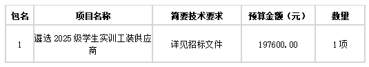 湖南省招标有限责任公司采购代理机构受衡阳技师学院的委托,对遴选2025级学生实训工装供应商(委托代理编号:0623-2685n1124004 )进行公开招标采购。欢迎符合资格条件的投标人前来投标。