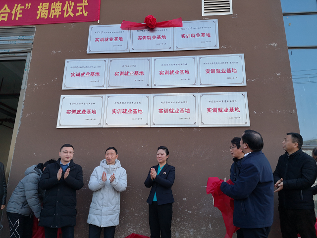 活动现场,张霞为衡阳市纺织服装产业链“校企合作”实训就业基地揭牌。院长邱家才作为院校签约方唯一代表发言。