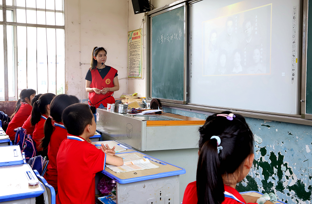 本网讯 为贯彻落实衡阳市委关于留守儿童关爱工程的部署要求,近日,衡阳技师学院开启“百千万‘艺术童伴’——留守儿童关爱工程”第二批支教帮扶活动。6月8日,该院派出精心挑选的支教老师队伍为衡山县店门镇中心完小的同学们上了一堂生动的党史教育课。