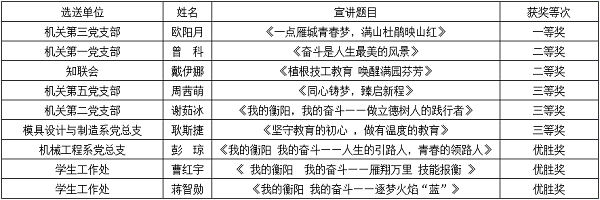 经过激烈的角逐,来自机关第三党支部选手欧阳月获得一等奖。学院将从获奖选手中推荐两人参加衡阳市复赛。