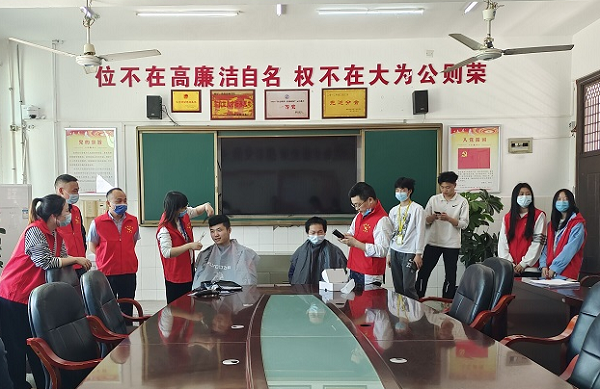 衡阳技师学院汽车工程系党员志愿服务团队为学生义务理发