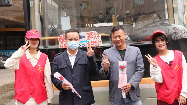 “叔叔,今天是属于你们的日子,感谢你们的奉献和付出。”“阿姨,谢谢你们,你们辛苦了!”5月20日,团市委联合衡阳技师学院等高校开展“关爱公交驾驶员”志愿服务活动,来自高校的120余名“衡阳群众”青年志愿者们纷纷来到学校附近的公交站点,向公交驾驶员“告白”,为他们送上寓意“尊重、理解、关爱”的康乃馨和暖心小卡片,字里行间皆是对公交驾驶员满满的关爱,感谢他们每天起早贪黑、披星戴月,守护着市民的平安出行!