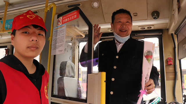 “每天奔波在城市间,今天才知道原来我们也有专属节日,收到志愿者的花感到特别惊喜!”“收到这样一份礼物很暖心,也很开心,在以后的工作中,我们要努力为广大市民服好务,力争做到让每一位乘客满意,平安愉快出行!”108路公交驾驶员王灿激动地说。