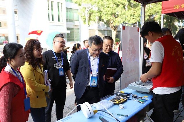 “学习雷锋好榜样,忠于革命忠于党,爱憎分明不忘本,立场坚定斗志强……”《学习雷锋好榜样》的歌声响彻校园。活动现场,学院“匠人匠心、爱心义剪、邻里守望、交通卫士、爱心缝补、绿色网络、创想3d、爱心工艺”8支特色志愿者服务队为学院师生、教职工家属开展爱心剪发、电器维修、汽车检修、电脑维护等特色志愿服务,以实际行动践行雷锋精神,争做新时代追“锋”人。