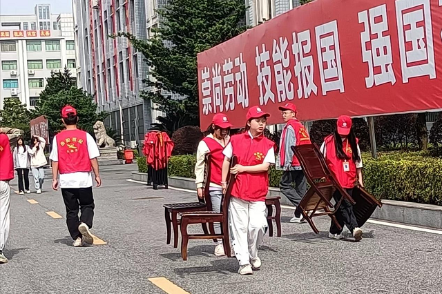 2023年5月24日学院在文化广场举办“2023年校园招聘大会暨第五届技能文化节启动仪式”,学院青年志愿者与礼仪队参加本次招聘会志愿服务活动。