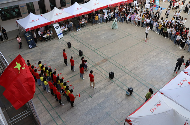 招新大会在快闪“我和我的祖国”歌声中拉开序幕,全场红旗飘扬,歌声嘹亮,共同庆祝新中国成立70周年,为祖国祝福。随后舞蹈团、声乐团、吉它协会、跆拳道运动协会、播音主持社、汉文化社、街舞协会、动漫社、美术社等社团分别进行了社团展演和展示。
