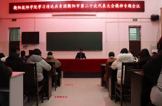 12月27日下午,衡阳技师学院学习传达共青团衡阳市第二十次代表大会精神专题汇报会在第一教学楼西面二楼多媒体教室召开,院团委全体团干、各系团总支书记、团干(员)代表共120余人参加学习。院团委副书记奉阳明作了专题汇报,鼓励全院广大团员青年团结一致,为我院创建国家级示范性技师学院和创建文明校园贡献青春、智慧和力量。