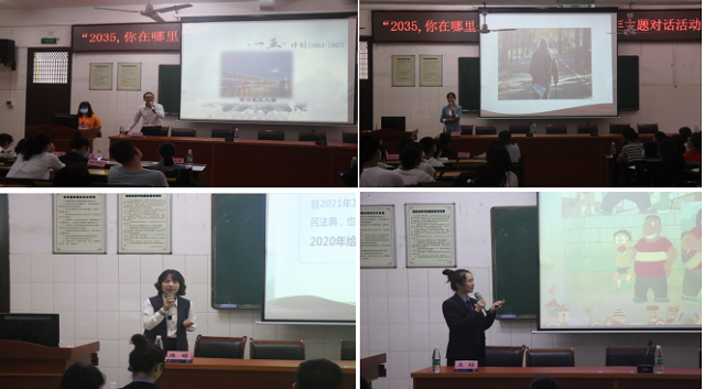在宣讲活动中,市委党校法律教研室主任陈婷、衡阳县检察院团委书记王琼、衡阳师范学院马克思主义专任教师翟光艳、衡阳市八中语文老师唐玉瑞四位青年讲师分别以《学习民法典、做新时代好青年》、《对校园暴力说“不”》《人民就是江山、江山就是人们》《五年计划之最》为主题,用生动活泼、通俗易懂的方式宣讲,点燃了同学们的热情和学习兴趣。同学们回顾了中国共产党发展历程中的动人时刻以及“十三五”期间我国取得的瞩目成就,表达了对“十四五”及对2035年美好生活的新期盼,学习了与青少年息息相关的民法典与青少年如何保护自己的法律知识,激发了为祖国的未来而奋斗的理想信念,树立了正确的法制观念和积极健康向上的心态。