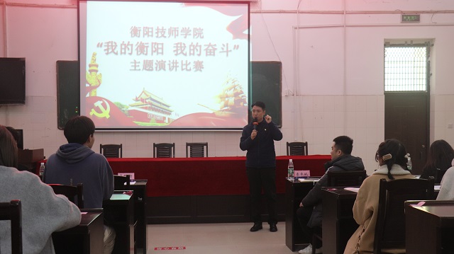 2021年12月22日下午衡阳技师学院团委举办了“我的衡阳 我的奋斗”主题演讲比赛,参赛选手是来自学院各系的青年学生,院团委老师李卓斌、彭富洪,公共课部谢茹冰,聂辉,罗贝妮等老师担任本次比赛评委,学院团委书记肖振衡、周茜萌老师出席比赛。