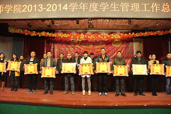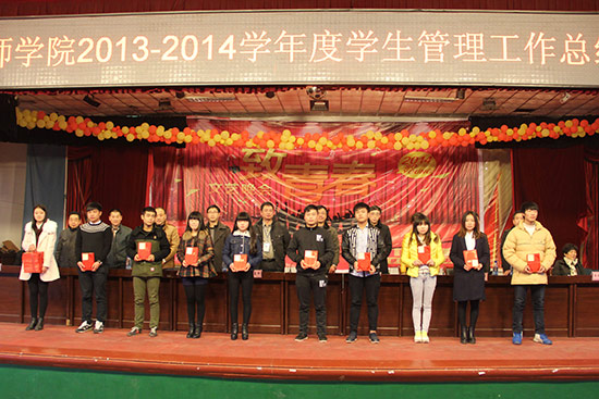 1月5日下午,衡阳技师学院2013-2014年度学生管理工作表彰大会在学院大礼堂隆重召开。唐和平副院长出席了大会,各系党总支书记、全体学管人员、学生代表共同参加了大会。大会由学生处处长周孝汉主持。